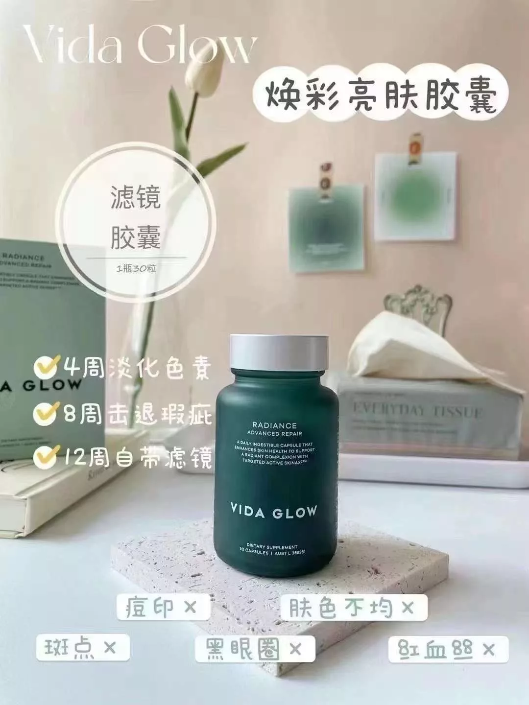 【融化不赔】Vida Glow 滤镜胶囊 焕彩亮肤胶囊(新版) 30粒