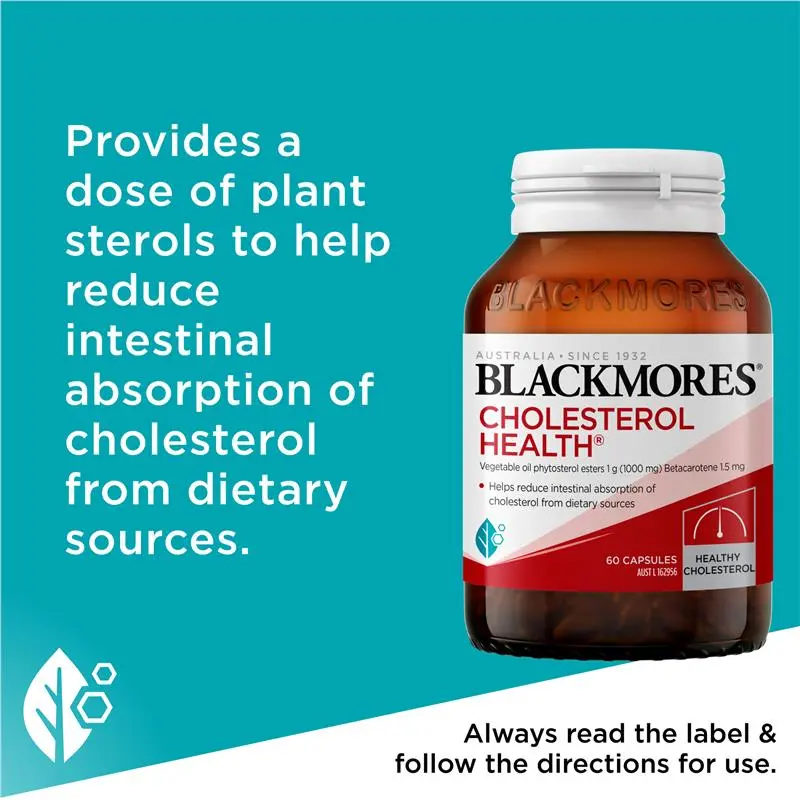 Blackmores Cholesterol Health® helps reduce intestinal absorption of cholesterol from dietary sources, maintain healthy cholesterol, and support general health and wellbeing.