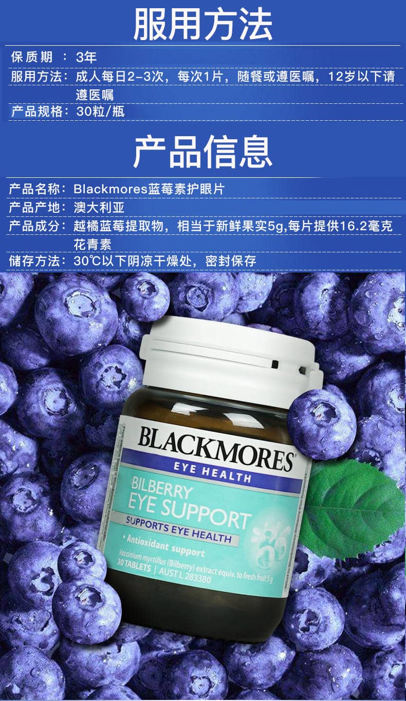 Blackmores 澳佳宝 蓝莓护眼片 Bilberry Eye Support Advanced 30粒