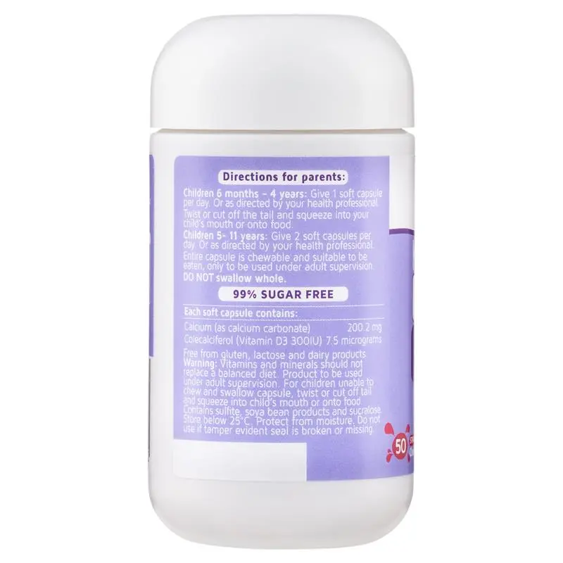 Kids Smart Calcium + Vitamin D3 capsules are 99.9% sugar free. They are the fun, easy and delicious way to help kids supplement calcium and vitamin D3 with a delicious strawberry milkshake flavour your kids will love!