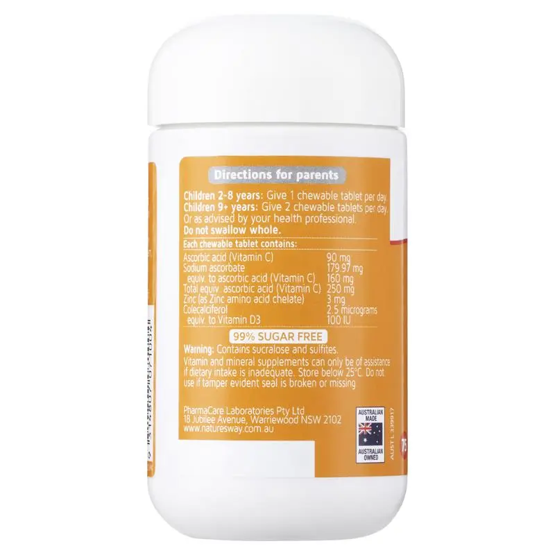 Kids Smart Vitamin C + Zinc + D3 supports your child’s healthy immune system function to fight illness and maintain general health and wellbeing. Specially formulated with key nutrients to support children’s immune system, bone and skin health and general wellbeing.