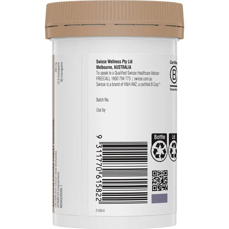 Contains: Calcium, Vitamin D3 & Vitamin K2